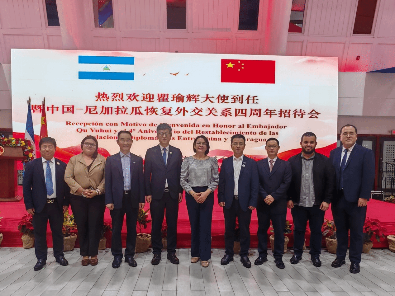 尼加拉瓜鲁班工坊的建设得到了驻尼使馆的全程大力支持。10日晚,中方团组主要成员应邀出席了“中尼复交四周年暨中国驻尼大使到任招待会”,与尼加拉瓜各界友人共庆双边关系发展成就。瞿瑜辉大使在讲话中指出美洲首家鲁班工坊在尼成功落地,将助力尼青年提升职业技能。