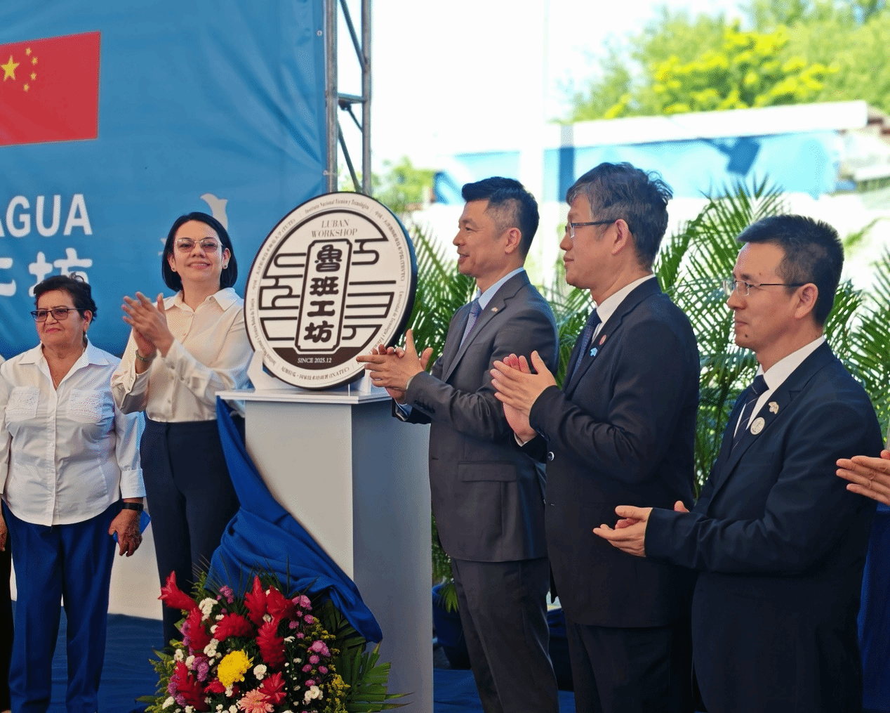 当地时间12月10日上午,由天津职业技术师范大学、天津渤海职业技术学院与尼加拉瓜国家技术培训署(INATEC)合作共建的尼加拉瓜鲁班工坊,在尼加拉瓜首都马那瓜隆重举行揭牌仪式,美洲第一个鲁班工坊正式落地启动运营。尼加拉瓜总统投资、贸易与国际合作顾问和对华合作牵头人劳雷亚诺·奥尔特加·穆里略和中国驻尼加拉瓜大使瞿瑜辉出席仪式。尼加拉瓜国家技术培训署(INATEC)署长洛伊达·巴雷达,尼加拉瓜教育部部长曼迪・阿劳斯,青年部长、桑地诺民族解放阵线全国青年委员会主席达琳・埃尔南德斯,大学联合会会长比斯马克·桑塔纳,马那瓜市长雷纳・鲁埃达,桑解阵青年团代表奥斯卡・佩雷斯;中方天津职业技术师范大学党委副书记、校长郑清春,天津渤海职业技术学院党委书记魏炳举,教育部鲁班工坊建设专家委员会主任吕景泉,天津市教委职业教育处副处长李友得、国际合作与交流处一级主任科员陈宇驾,市外办美大处一级主任科员郭栋,中尼建设团队及各界代表约300人参加了仪式。
