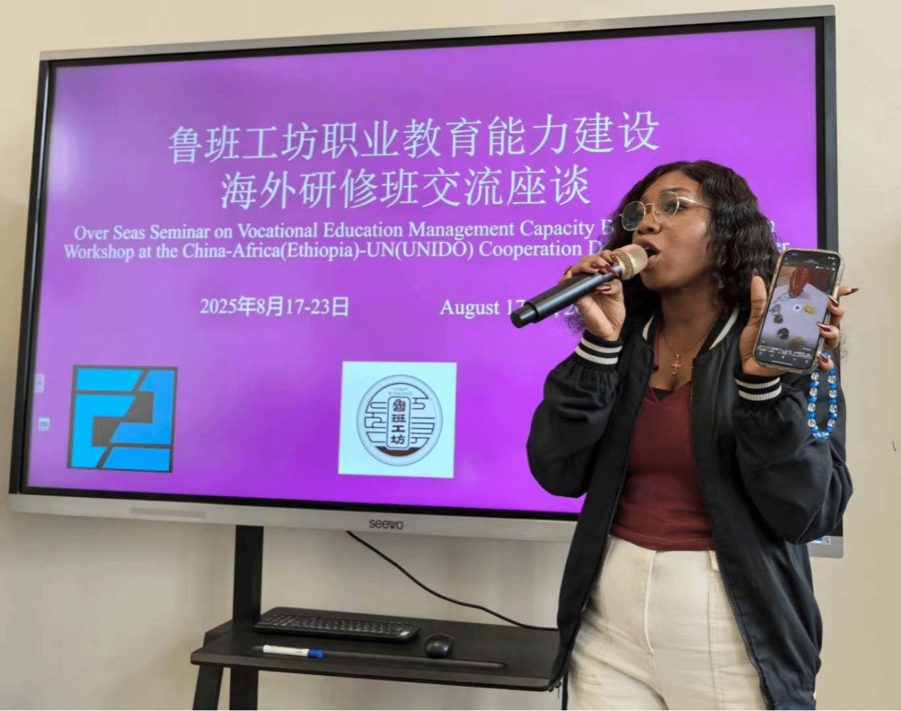 2025年8月,中非联合作示范中心“鲁班工坊职业教育管理能力建设海外研修班”在埃塞俄比亚联邦职业技术培训学院举行开班仪式。中国驻非盟使团蒋烽大使、工发组织驻埃塞代表阿希格德、非盟教育司代表索菲亚、埃塞职业教育学院副校长哈夫托姆等致辞。