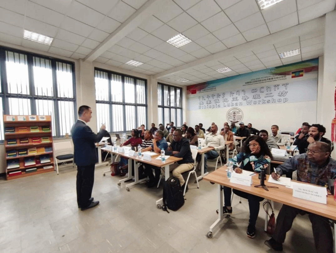 该研修班由国家商务部主办,埃塞俄比亚鲁班工坊、非盟研究中心协助组织。教育部鲁班工坊建设专家委员会主任、工程实践创新项目(EPIP)研推中心主任、我校吕景泉教授,国际交流处副处长高洋作为本次研修班的特邀专家,赴埃塞俄比亚为本次研修班开展了“鲁班工坊溯源、宗旨与全球发展成果”“工程实践创新项目(EPIP)教学模式的内涵、应用与全球影响”等重要讲座。